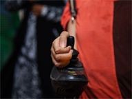 Gabes. Chott Essalem Oasis. June 4, 2016. Jihan, 15, whose hand is afflicted with a disease that has progressively caused her to lose the use of her muscles, rests on the control that steers her wheelchair. Today, she can no longer stand upright and requires constant assistance. Her brother, Ali, 8, suffers from the same disease and will also lose the use of his muscles. Jihan has had to stop attending school for two years.