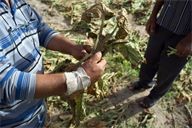 Salem Chairat inspects his crops damaged by the acid rain of April 2016. He has initiated legal proceedings to have the GCT factory compensate him for his losses. The Chairat family's farmland is located near the Tunisian Chemical Group's factory, which processes raw phosphate extracted from the Gafsa region to produce chemicals such as fertilizer and phosphoric acid. Farmers complain about the pollution caused by the release of toxic products into the air, soil, and sea, which regularly damage their crops.