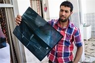 Majdi Chairat looks at the X-rays of his cousin's skeleton. Her cousin suffers from skeletal fluorosis, a disease that weakens bones and joints. Consuming contaminated water over long periods can have harmful effects on the body. If left untreated, neurological disorders can develop.