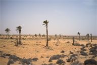 Gabes. Djerba Road. June 5, 2016. Palm trees along the road connecting Gabes to Djerba.