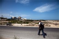 Meherz Hamrouni, captain and president of the Gabes coastal fishing union, walks along the road leading to the Tunisian Chemical Group (GCT) plant in Gabes. He has stopped going out to sea due to the lack of fish. The toxic and polluting waste discharged by the Tunisian Chemical Group (GCT) plant has killed all marine life since the 1990s. The Gulf of Gabes was an important breeding ground. The plant discharges 13,000 tons of dry phosphogypsum daily into the Mediterranean, and it accumulates on the beach.