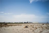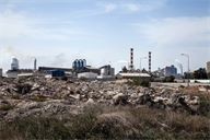 View of the Tunisian Chemical Group (GCT) plant from Gabes beach. The plant is a Tunisian state-owned company that produces and processes phosphate extracted from the Gafsa region into chemical products such as fertilizer and phosphoric acid. Exporting 90% of its production, the group is the main economic driver of the region and employs over 3,000 people on site. Farmers in the oasis face severe soil and air pollution due to toxic and polluting discharges into the air and sea. The plant releases 13,000 tons of dry phosphogypsum into the Mediterranean Sea every day.