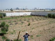 Gabes. June 4, 2016. View from the Chairat family's plot in the Chott Essalem oasis of the Tunisian Chemical Group (GCT) plant in Gabes. The plant is a Tunisian state-owned company that produces and processes phosphate extracted from the Gafsa region into chemical products such as fertilizer and phosphoric acid. Exporting 90% of its production, the group is the main economic driver of the region and employs over 3,000 people on site. Farmers in the oasis face severe soil and air pollution due to toxic and polluting discharges into the air and sea. The plant releases 13,000 tons of dry phosphogypsum into the Mediterranean Sea every day.