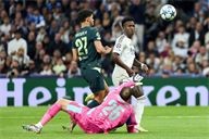 Vinicius Junior of Real Madrid CF during the UEFA CHAMPIONS LEAGUE match between Real Madrid CF and Manchester City FC at Bernabeu stadium on December 10, 2025.