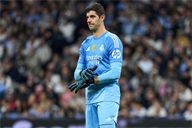 Thibaut Courtois of Real Madrid CF and Bernardo Silva of Manchester City FC during the UEFA CHAMPIONS LEAGUE match between Real Madrid CF and Manchester City FC at Bernabeu stadium on December 10, 2025.