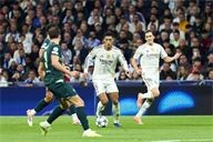 Alvaro Carreras of Real Madrid CF during the UEFA CHAMPIONS LEAGUE match between Real Madrid CF and Manchester City FC at Bernabeu stadium on December 10, 2025.