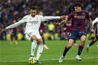 Kylian Mbappe of Real Madrid CF and Pablo Martinez of Levante UD during the La Liga EA Sport match between Real Madrid CF and Levante UD at Bernabeu stadium on January 17th, 2026.
