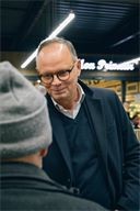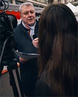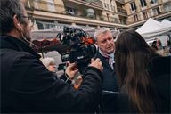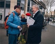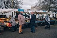 Jean-Paul Lecocq campaigning at the Coty market gives an interview to France 3 Normandie