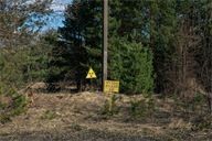 Signs indicating the presence of radioactive waste in Pripyat. On April 26, 1986, reactor 4 of the Chernobyl nuclear power plant exploded, causing the worst nuclear disaster in the history of civilian nuclear power. Forty years later, within the exclusion zone, the site’s infrastructure continues to be operated and secured despite Russia’s invasion of Ukraine.